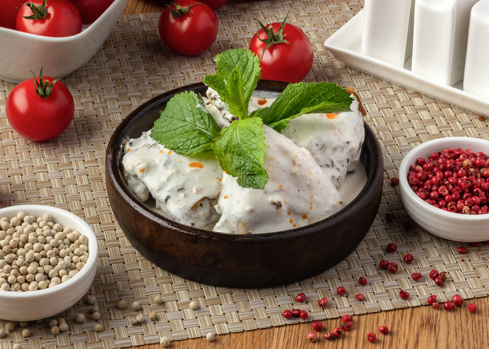 Виноградные листья фаршированные рубленым говядиной с рисом.